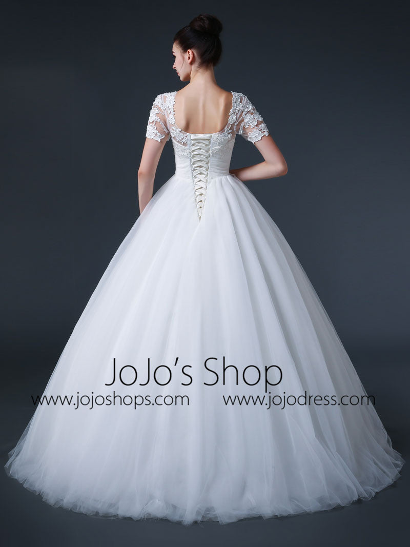 Stunning debutante ball gown dress with lace sleeves, can also be used as wedding gown.