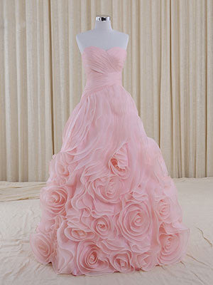 Beautiful strapless evening dress with rosette style ruffles on the skirt. Can also be ordered in other colors.