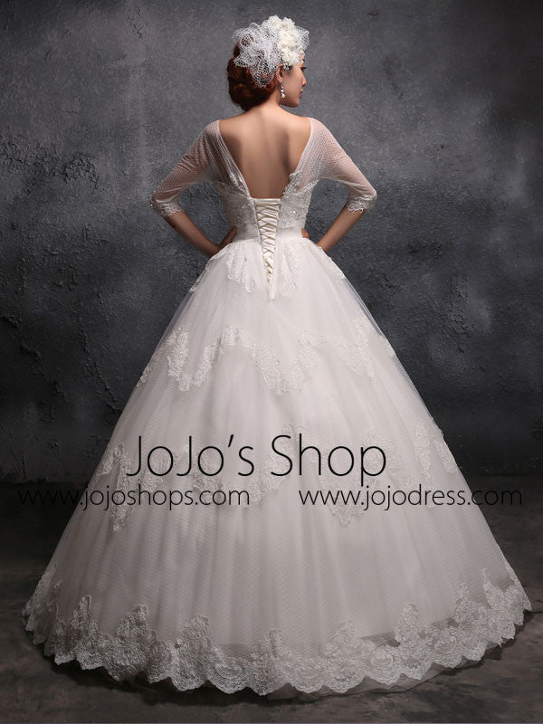 This Victorian-style debutante dress features a beautiful lace ball gown skirt complemented by 3/4 sleeves. Its adjustable back can be customized to suit any body shape. Perfect for creating a timeless and elegant look.